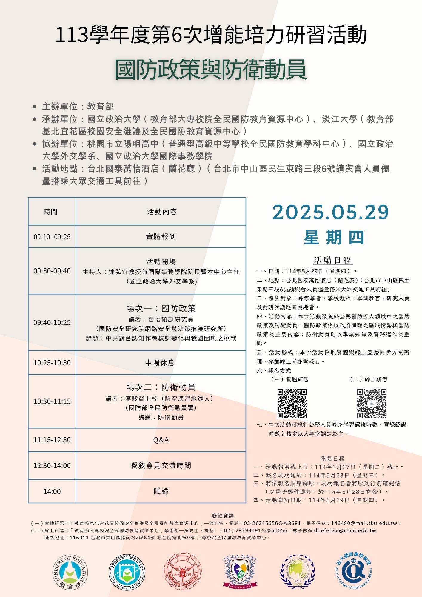 一、舉辦時間:114年5月29日(四) 上午9時30分至12時30分。
