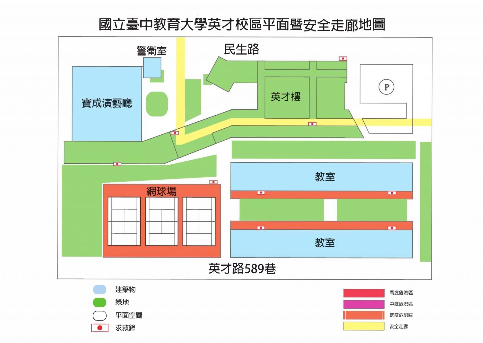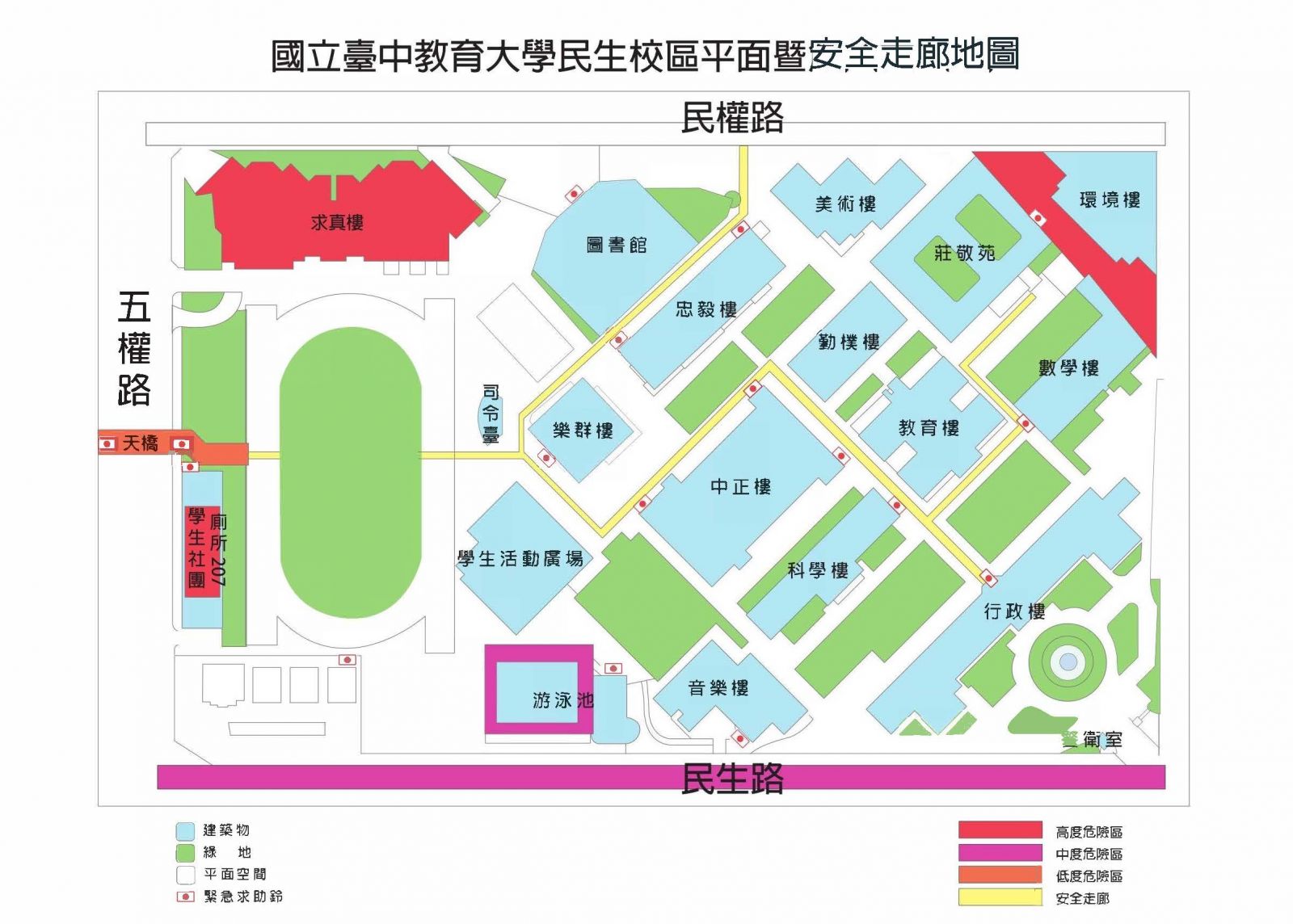 | 下載專區 | 校園安全地圖 | 國立臺中教育大學民生校區平面暨安全走廊地圖 國立臺中教育大學英才校區平面暨安全走廊地圖 |